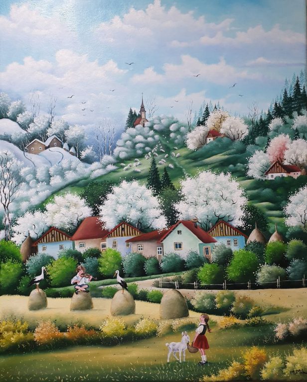 Expoziția reunește compoziții realizate în stilul specific picturii naive care a prins viață la școala întemeiată la Brusturi de Ion Niță Nicodin în secolul trecut – un registru artistic în care spontaneitatea, simbolismul și privirea nealterată asupra lumii conferă un farmec aparte fiecărei lucrări. Mariana Mihuț construiește astfel o poveste plastică despre identitatea rurală românească, despre frumusețea locurilor și oamenilor care păstrează viu spiritul satului și despre valorile profunde ale tradiției și ale vieții de la sat, într-o formulă artistică accesibilă și emoționantă.