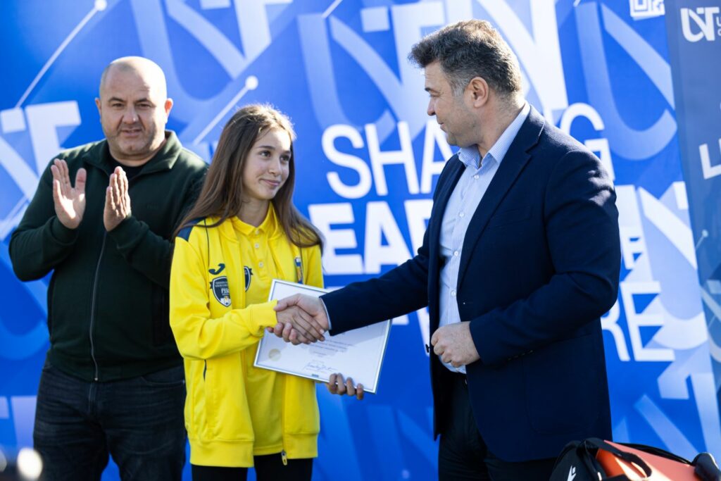 La ceremonia de la Moravița au participat, pe lângă eleva premiată și reprezentanții UVT, primarul localității, Răzvan Brăzdău, antrenorul Eugen Iovan, mama elevei, colegi și prieteni.