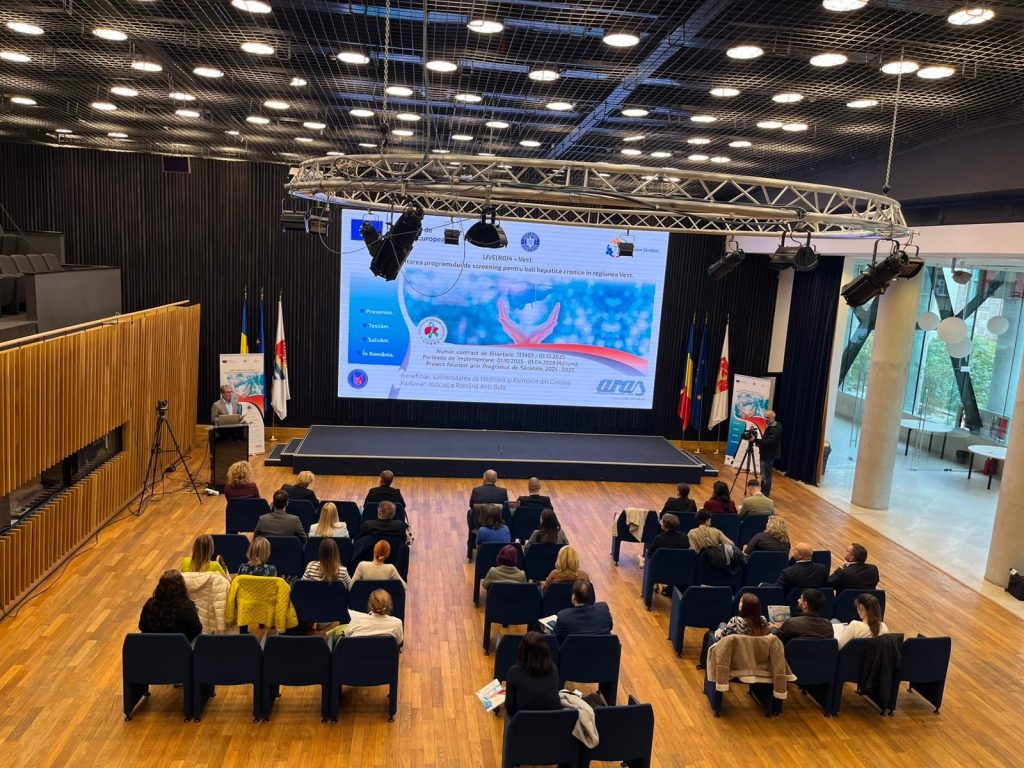 Un nou program de prevenție și depistare precoce a bolilor hepatice cronice a fost lansat astăzi în regiunea de Vest, sub denumirea „LIVE(RO) 4 – Vest: Implementarea programului de screening pentru boli hepatice cronice în regiunea de Vest”. Proiectul este derulat de Universitatea de Medicină și Farmacie din Craiova, în calitate de beneficiar, în parteneriat cu Spitalul Clinic Județean de Urgență „Pius Brînzeu” din Timișoara și Asociația Română Anti-SIDA (ARAS).