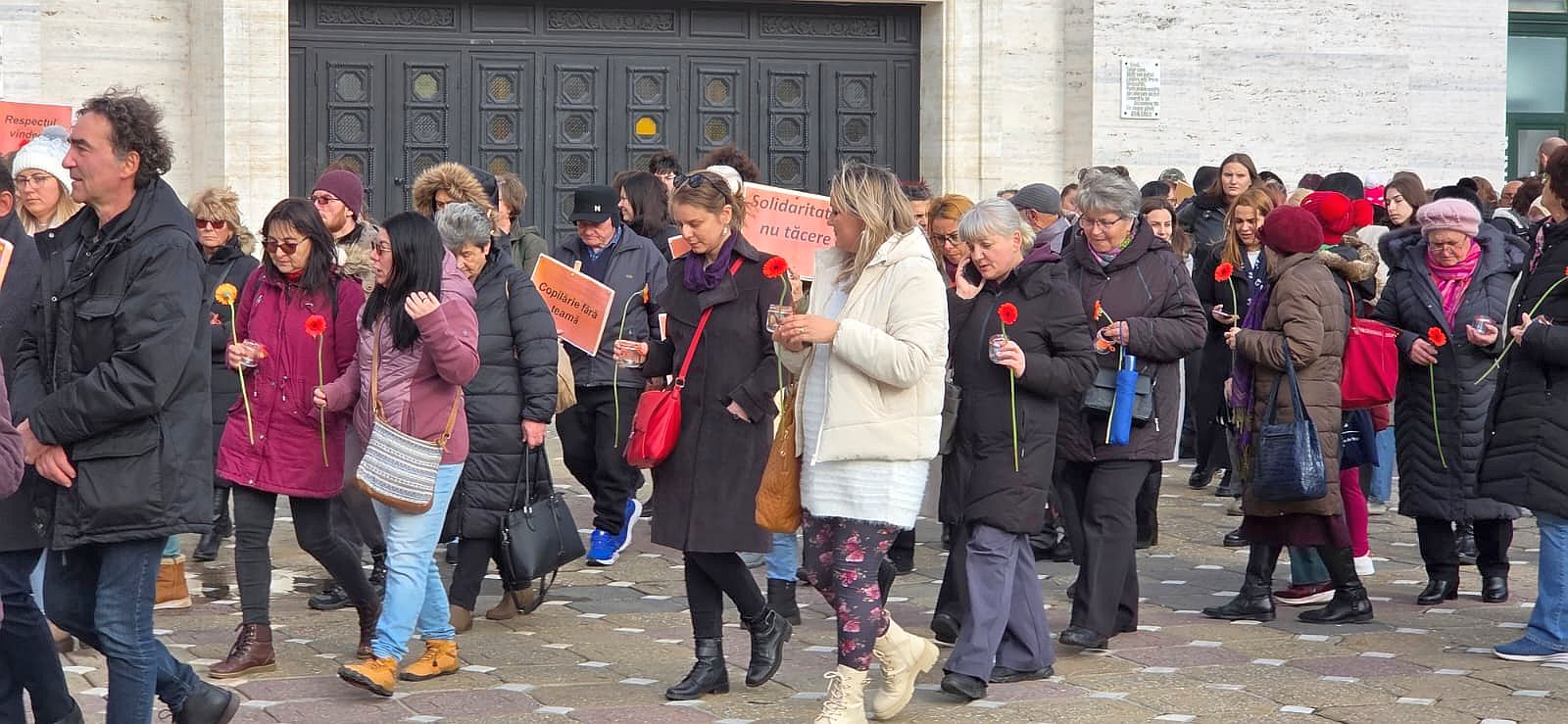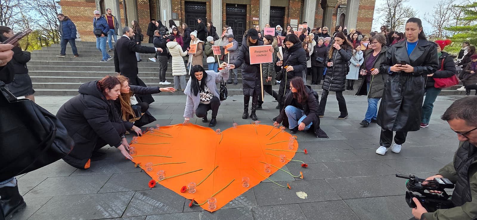La final, în fața Catedralei Mitropolitane, a avut loc un moment de reculegere, cu aprinderea de lumânări și depunerea de flori în memoria femeilor victime ale femicidului în 2025.