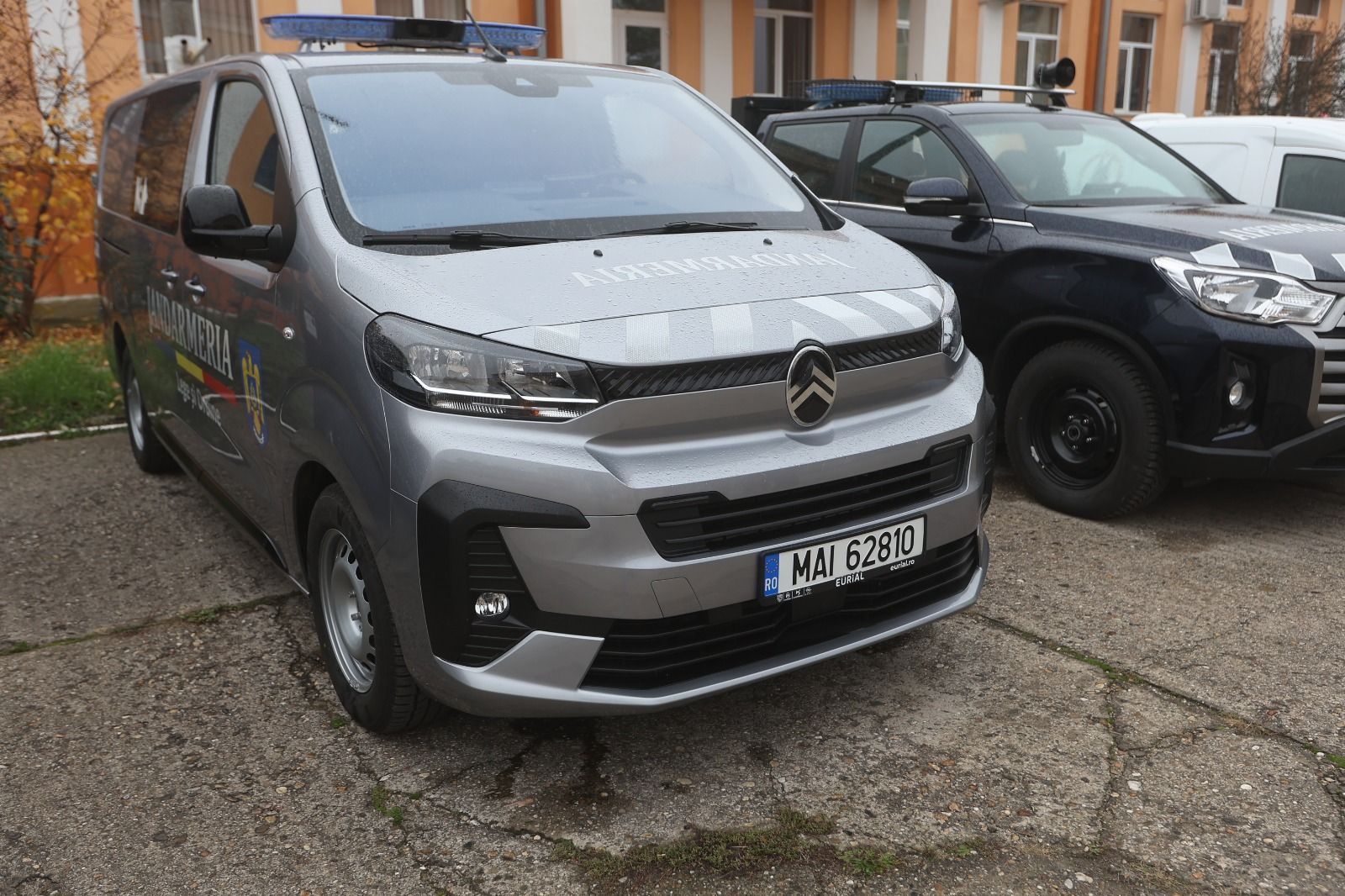 - Autoutilitară Citroen Jumpy – special amenajată pentru transportul câinilor de serviciu, cu ventilație, climatizare, cuști individuale și sistem de monitorizare;