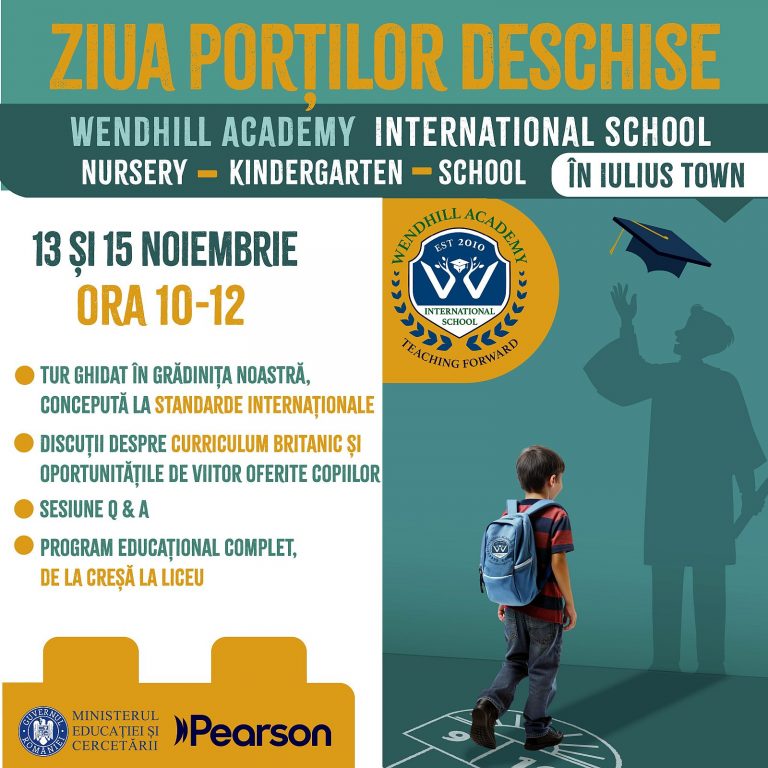 Creșa și grădinița Wendhill Academy din Iulius Town au devenit primele instituții din vestul țării acreditate în sistemul britanic Pearson, cel mai mare furnizor de educație britanică din lume. Părinții care doresc să afle mai multe despre sistemul de învățare britanic sunt invitați la evenimentul Open Doors, care va avea loc în 13 și 15 noiembrie 2025.