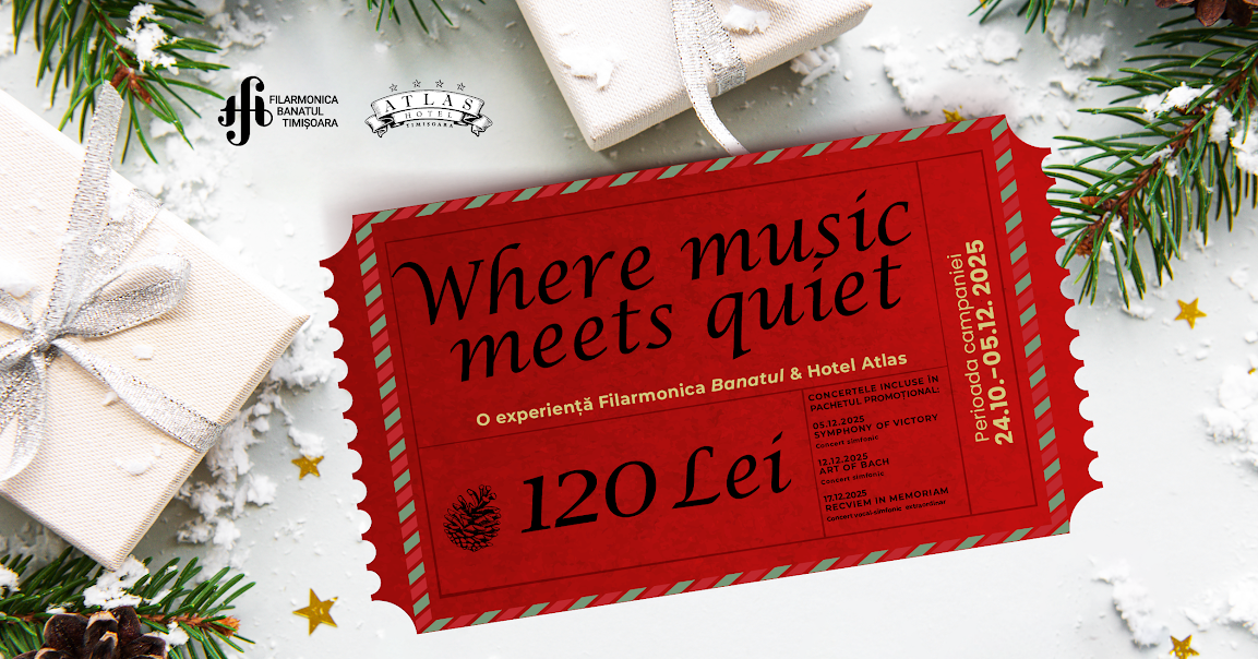 Pachetul realizat de filarmonica „Banatul” și hotel Atlas, aflat peste drum de Piața Sf. Gheorghe, al cărui farmec arhitectural al secolului al XVIII-lea se îmbină cu confortul modern, poate fi cumpărat individual sau oferit în dar unei persoane dragi, reprezentând o alegere inspirată pentru luna decembrie. Acesta garantează cumpărătorului aceleași locuri la fiecare dintre cele trei concerte iar deținătorii pachetelor pot participa la o tragere la sorți pentru un sfârșit de săptămână la hotel Atlas, unde se pot bucura de o cameră dublă cu mic dejun inclus, având ocazia de a alege între două perioade de cazare – 19-21 decembrie sau 26-28 decembrie.