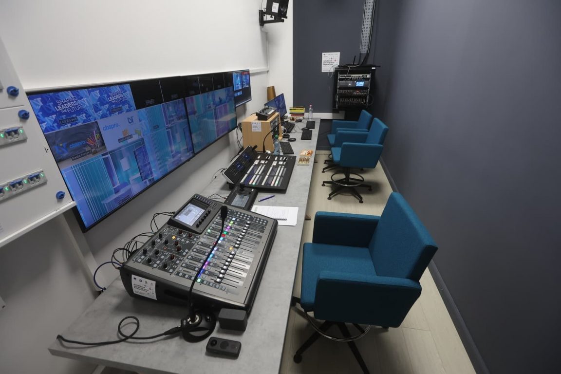 Spațiul este împărțit în două zone principale: Studio 1 – TV și Talk-show, cu iluminare dinamică și decor modular, și Studio 2 – Multimedia & Podcast, adaptabil pentru filmări și podcasturi vizuale. Ambele sunt operate printr-un centru de control cu echipamente de ultimă generație, oferind studenților o experiență completă de producție.