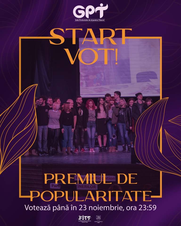 Timișorenii sunt invitați să voteze pentru Votul de Popularitate la această gală, până pe 23 noiembrie la ora ora 23:59, aici. Proiectul câștigător va fi anunțat la evenimentul de acordare a premiilor din 27 noiembrie, la Casa Tineretului.