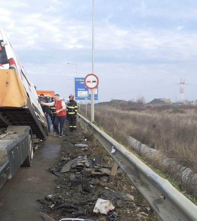 UPDATE Conform IPJ Timiș, în jurul orei 9, un bărbat de 33 de ani a condus un autoturism pe centura Timișoarei dinspre DN 6 înspre localitatea Moșnița Nouă, iar la un moment a pătruns pe sensul opus de mers și a intrat în coliziune cu o autoutilitară condusă de un bărbat în vârstă de 30 de ani, fiind proiectat într-un alt autoturism condus de un bărbat în vârstă de 47 de ani. În urma impactului, au rezultat 4 victime, respectiv cei doi conducători auto de 30 și 33 de ani, și 2 pasageri o femeie de 30 de ani aflată în primul autovehicul și un tânăr de 24 de ani aflat în autoutilitară.