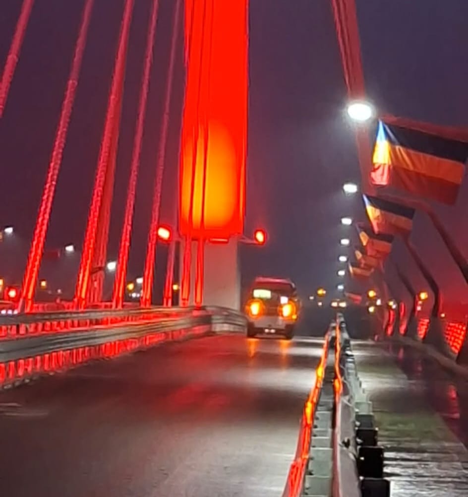 În ajunul Căciunului, când toți locuitorii Aradului se pregăteau să săbătorească Nașterea Domnului, Moș Căciun a scos din desagă podul hobanat care, după avatarurile prin care a trecut făcându-l celebru, a fost, în sfârșit inaugurat și deschis circulației. El a fost dăruit primarului Aradului, Călin Bibarț, singurul prezent la darul Moșului.
