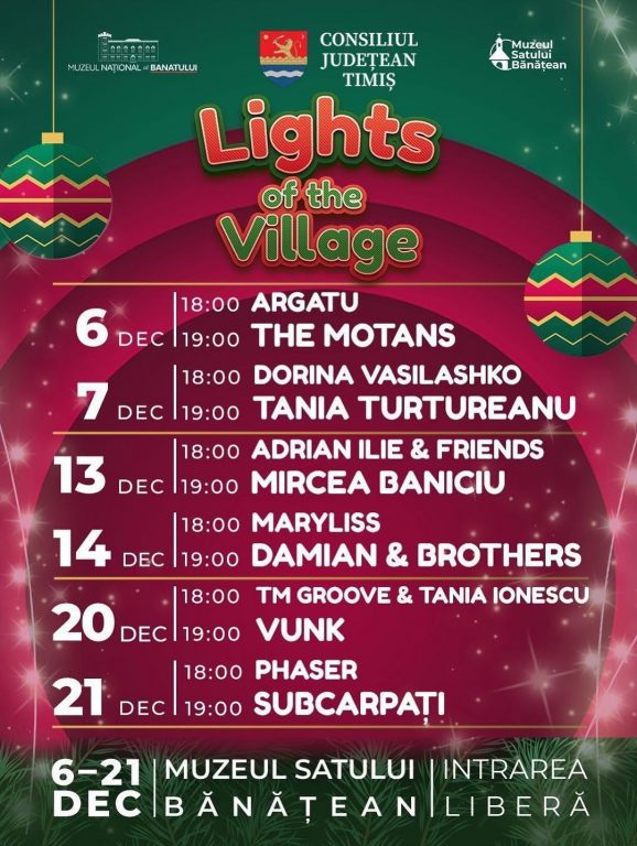 Magia sărbătorilor de iarnă prinde viață la Muzeul Satului Bănățean (MSB), care se transformă, începând de astăzi, 6 decembrie, și până pe 21 decembrie, într-un spectaculos „Parc al Luminilor”. Inițiativa Asociației Visit Timiș aduce o serie de atracții menite să introducă publicul în atmosfera de poveste a Crăciunului.