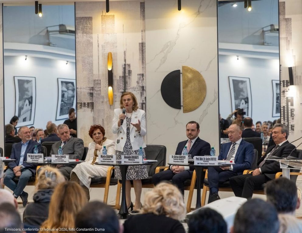 Timișoara, 13 februarie 2026. Reforma sistemului sanitar și integrarea inteligenței artificiale au fost temele centrale ale conferinței organizate de Asociația Femeilor Antreprenor din România (AFAR), în parteneriat cu Camera de Comerț, Industrie și Agricultură Timiș, cu participarea ministrului Sănătății, Alexandru Rogobete, și a mai multor reprezentanți ai mediului universitar, medical și de afaceri.