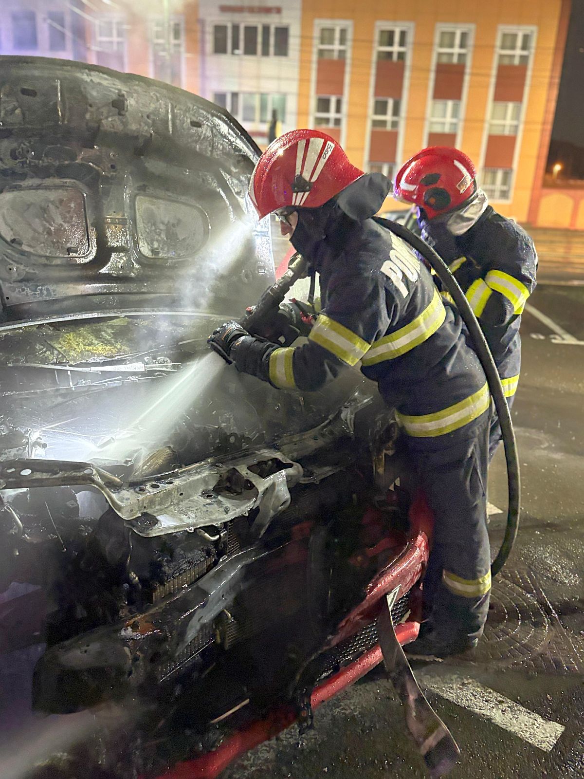 La sosirea echipajelor, incendiul se manifesta la compartimentul motor al unuia dintre cele două autoturisme implicate. Pompierii au acționat rapid, reușind să lichideze flăcările înainte ca acestea să se extindă la întregul vehicul sau la celălalt autoturism.