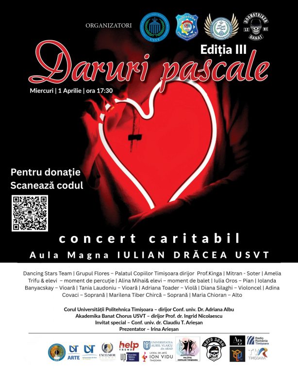 Pentru a contribui la acoperirea cheltuielilor medicale, Doomstriker LEMC Banat, în parteneriat cu Universitatea de Științele Vieții „Regele Mihai I” din Timișoara, organizează evenimentul caritabil „Daruri Pascale – ediția a III-a”. Evenimentul va avea loc în data de 1 aprilie, începând cu ora 17:30, în Sala Aula Magna a universității. Participanții vor avea ocazia să contribuie la strângerea de fonduri necesare tratamentului, inclusiv prin donații directe sau prin scanarea codului QR.