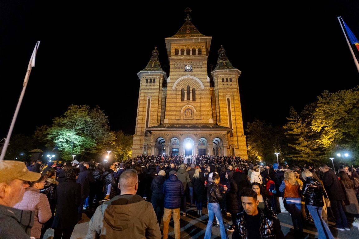 Aproximativ 5.000 de oameni au venit în noaptea de sâmbătă spre duminică să ia Lumină de la Catedrala Mitropolitană din Timișoara.