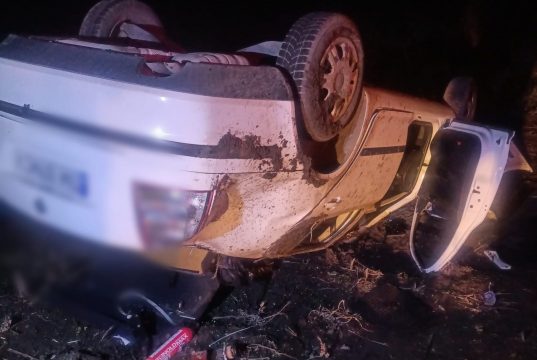 Trei răniți în Timiș după ce o mașină s-a răsturnat în afara părții carosabile