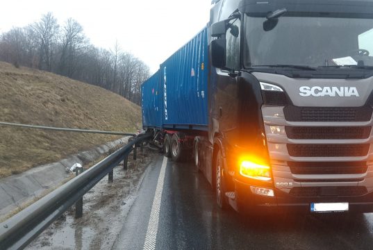 Trafic restricționat pe autostrada A1, în vestul țării. Un TIR a lovit parapetul de protecție pe breteaua de coborâre