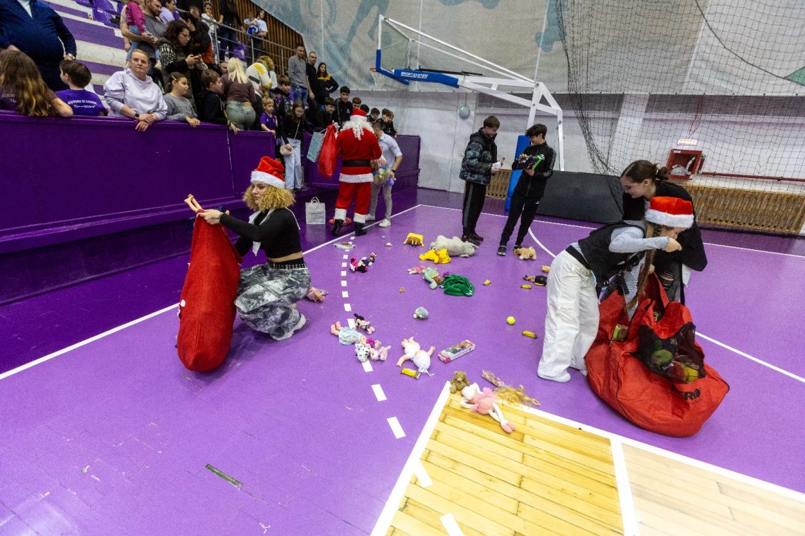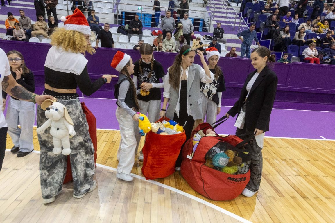 Altfel, SCM Poli a păstrat tradiția iar la pauză spectatorii din sala Constantin Jude au putut arunca pe parchet cu jucării de pluș, dar să și aducă pentru sacul Moșului alimente neperisabile și alte obiecte de igienă pentru a fi donate.