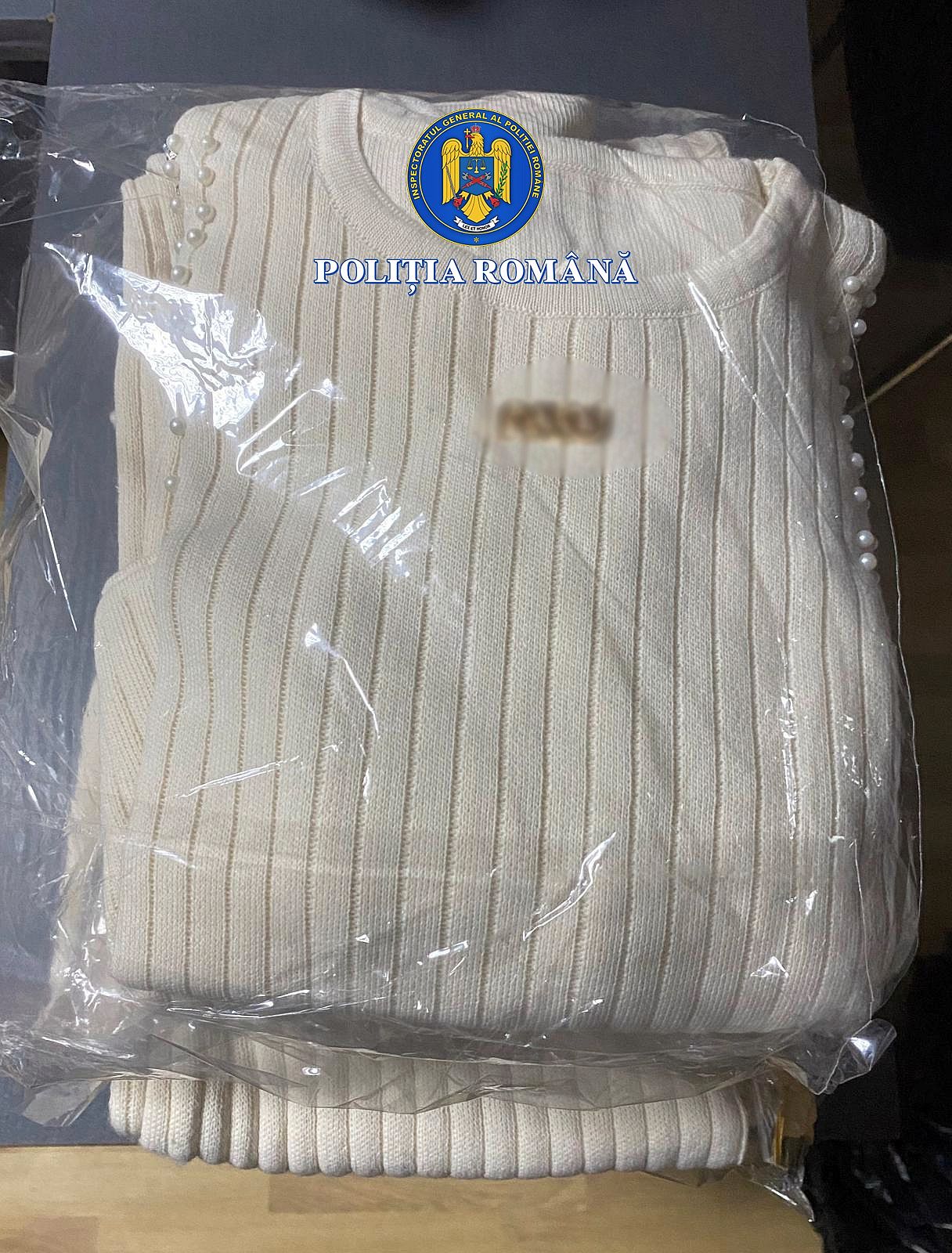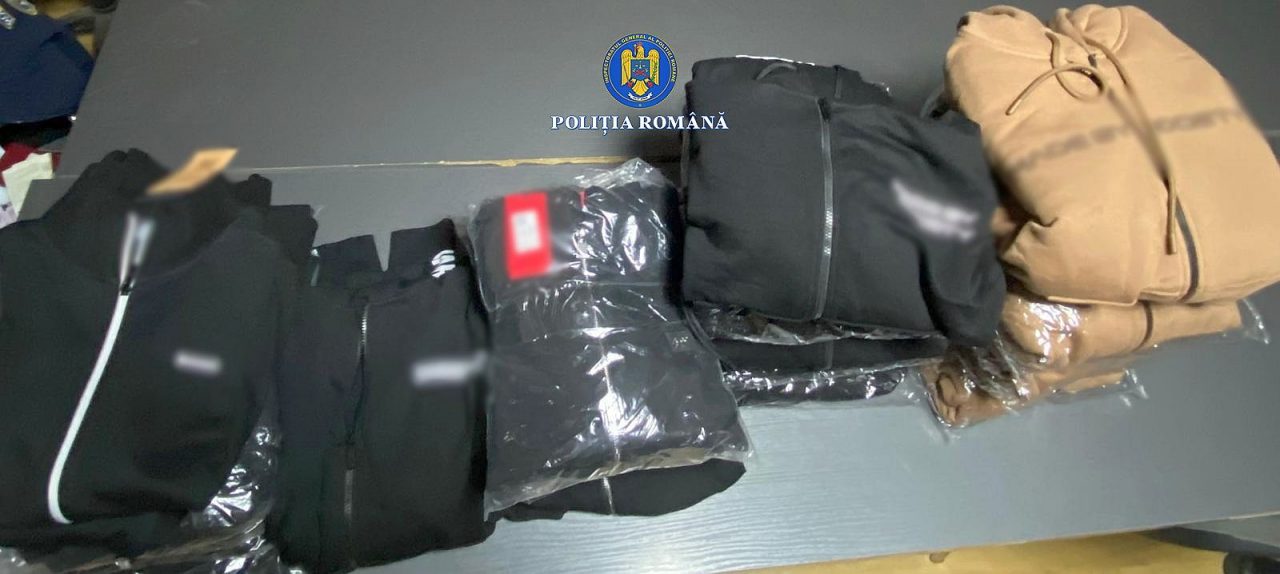 În urma controlului, forțele de ordine au găsit în interiorul vehiculului mai multe pachete conținând geci, bluze, hanorace, parfumuri și produse cosmetice, toate purtând însemnele unor mărci renumite, fiind susceptibile a fi falsuri.