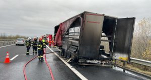 TIR cuprins de flăcări pe autostrada A1, în vestul țării. UPDATE...