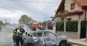 Mașină electrică, distrusă de flăcări într-o localitate din Timiș