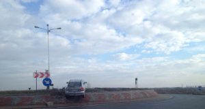 O maşină a zburat pe un sens giratoriu de pe şoseaua...
